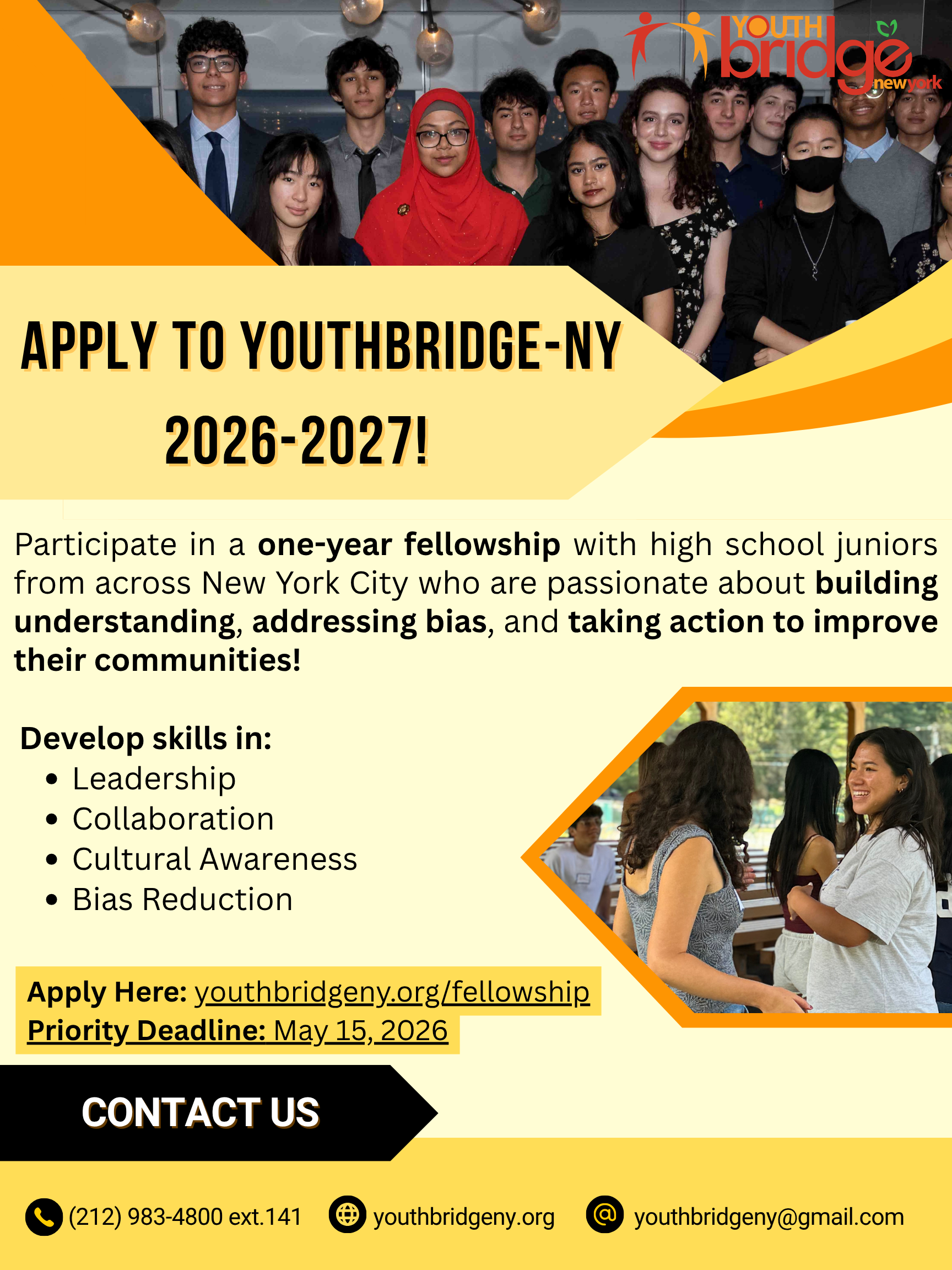 YouthBridge-NY WILL BE MEETING IN-PERSON FOR THE 2026-2027 Fellowship Year!
